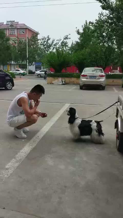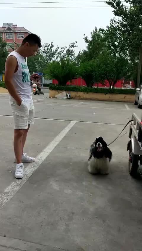 这个黑白花贵宾真有个性