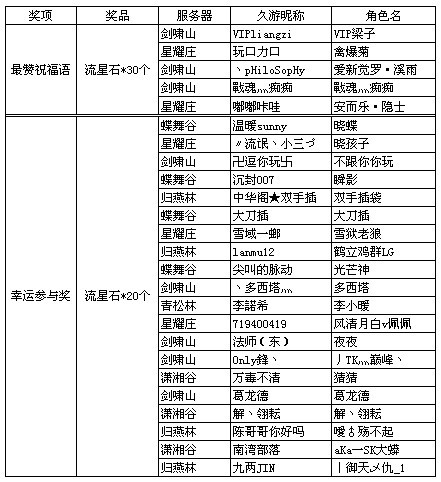 恭喜以上玩家获奖!活动奖励将于一周内通过邮件形式发放至各账号的角色上,请注意查收。
